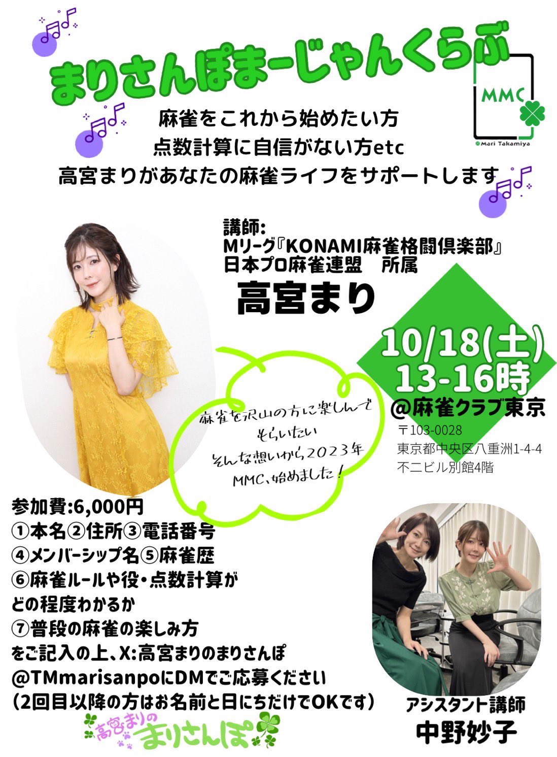 毎月開催(予定)となっておりますので、これから麻雀を始めたい方や、麻雀がうまくなりたい方はお見逃しなく!